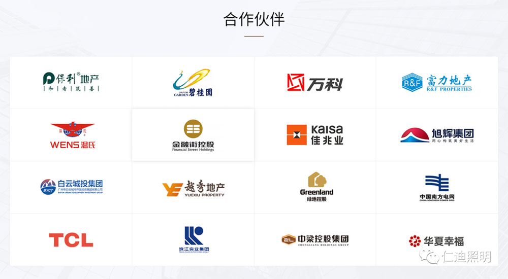 仁迪照明为广大客户提供专业服务,我们客户覆盖市政、地产、制造业、酒店、园林、机场、桥梁、医院、学校及宗教场所等,并成功铸造了多个央企、国企及大型房地产的照明工程案例,如:清远奥林匹克中心、保利鱼珠夜景照明,保利珠海西湖湿地国际花园、万科南站、万科城等项目、碧桂园办公楼项目泛光工程、佳兆业山海湾泛光照明、澳门大学体育馆、广州白天鹅宾馆、太古汇文华酒店、广州富力机场假日酒店、珠海体育馆、广州演艺中心、保利金融城、三亚财经国际论坛中心等项目。