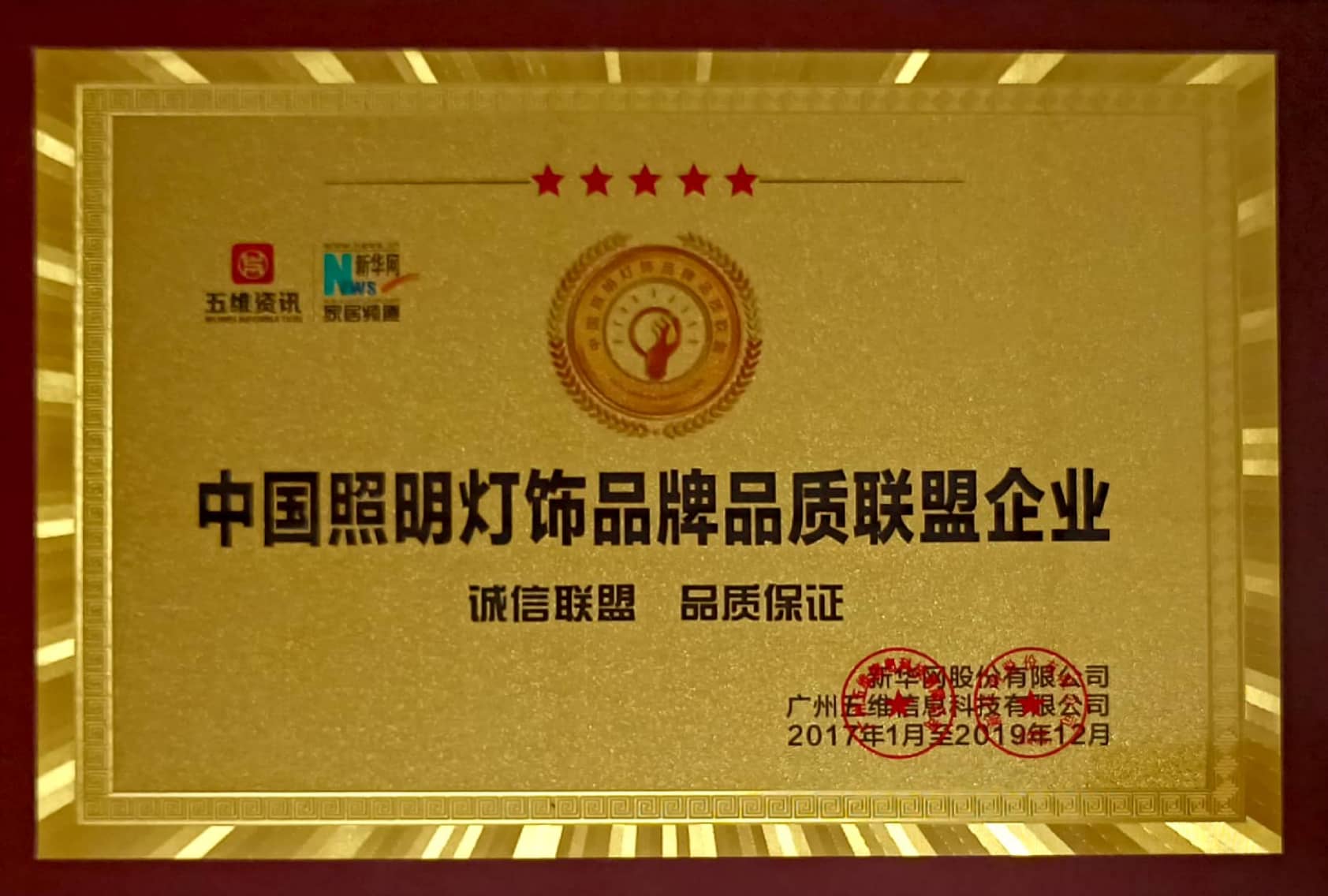 热烈祝贺仁迪照明荣获中国照明灯饰品牌品质联盟企业