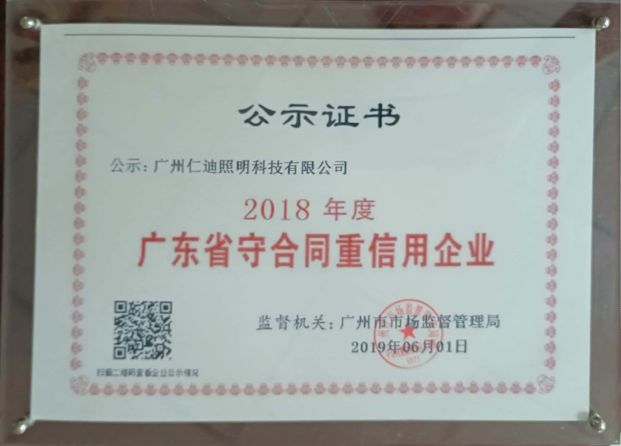 热烈祝贺我司获得“广东省守合同重信用企业”荣誉称号